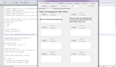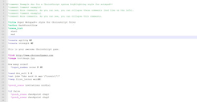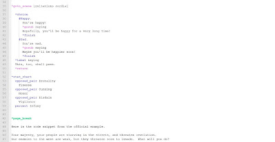 - Choice 'I prefer oranges' leads to 'I love oranges too, puddin!' and sets the variable 'PlayerLikes' to 'Oranges'