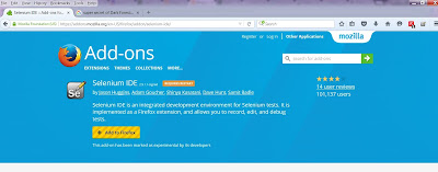 1.) Install Selenium IDE plugin. Go to addons.mozilla.org and press the 'Add to Firefox' button.